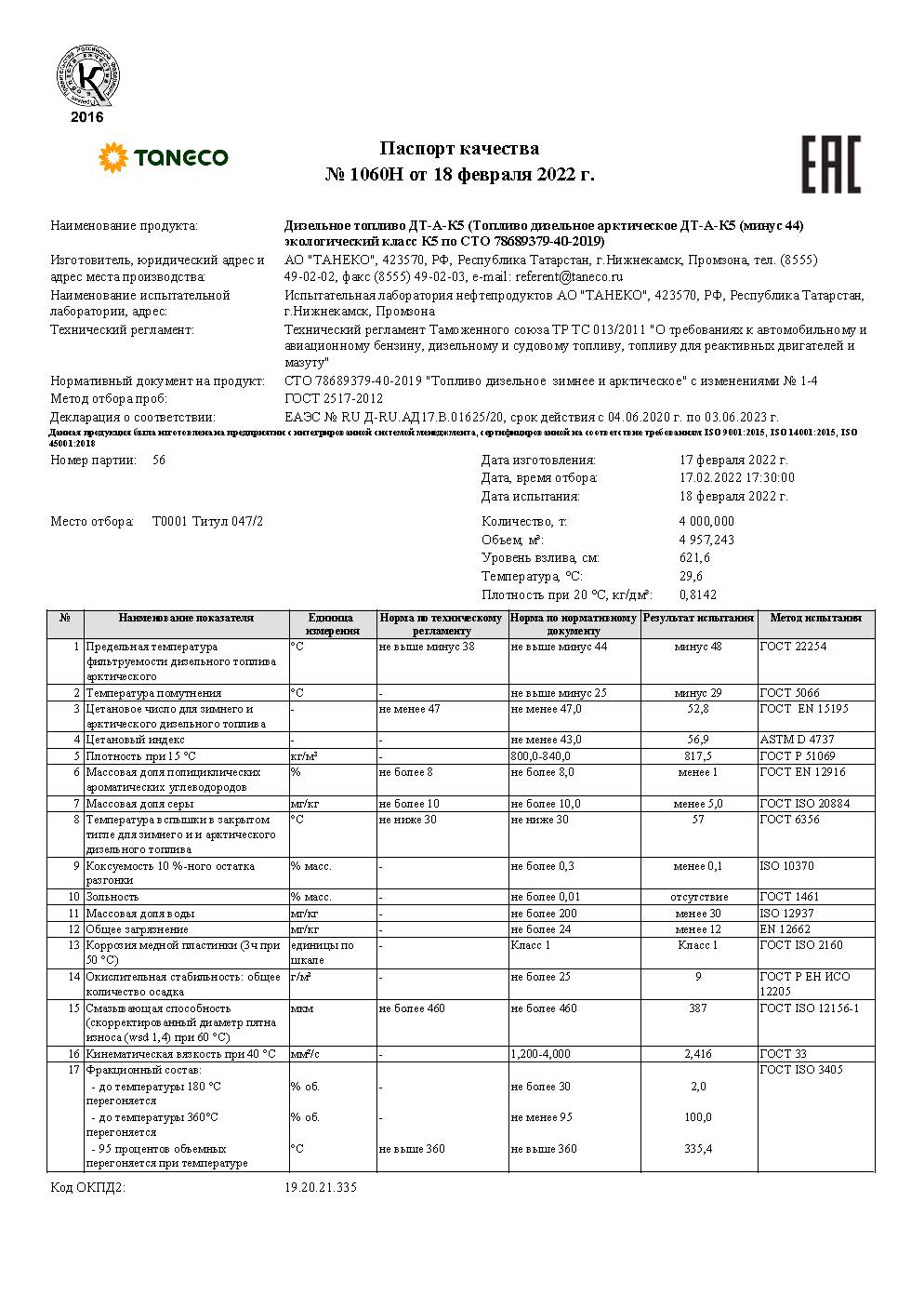 Предлагаем купить дизтопливо с доставкой от 1000 литров. Продукт предназначен для использования на Крайнем Севере и схожим с ним по климатическим условиям регионах. В отличие от обычного зимнего дизеля (ДТЗ класс 1), арктическое топливо обеспечивает стабильную работу оборудования и спецтехники в районах с периодическими понижением температуры до -40°С и ниже. В состав горючего включены компоненты, которые не допускают его загустения даже на сильном морозе.