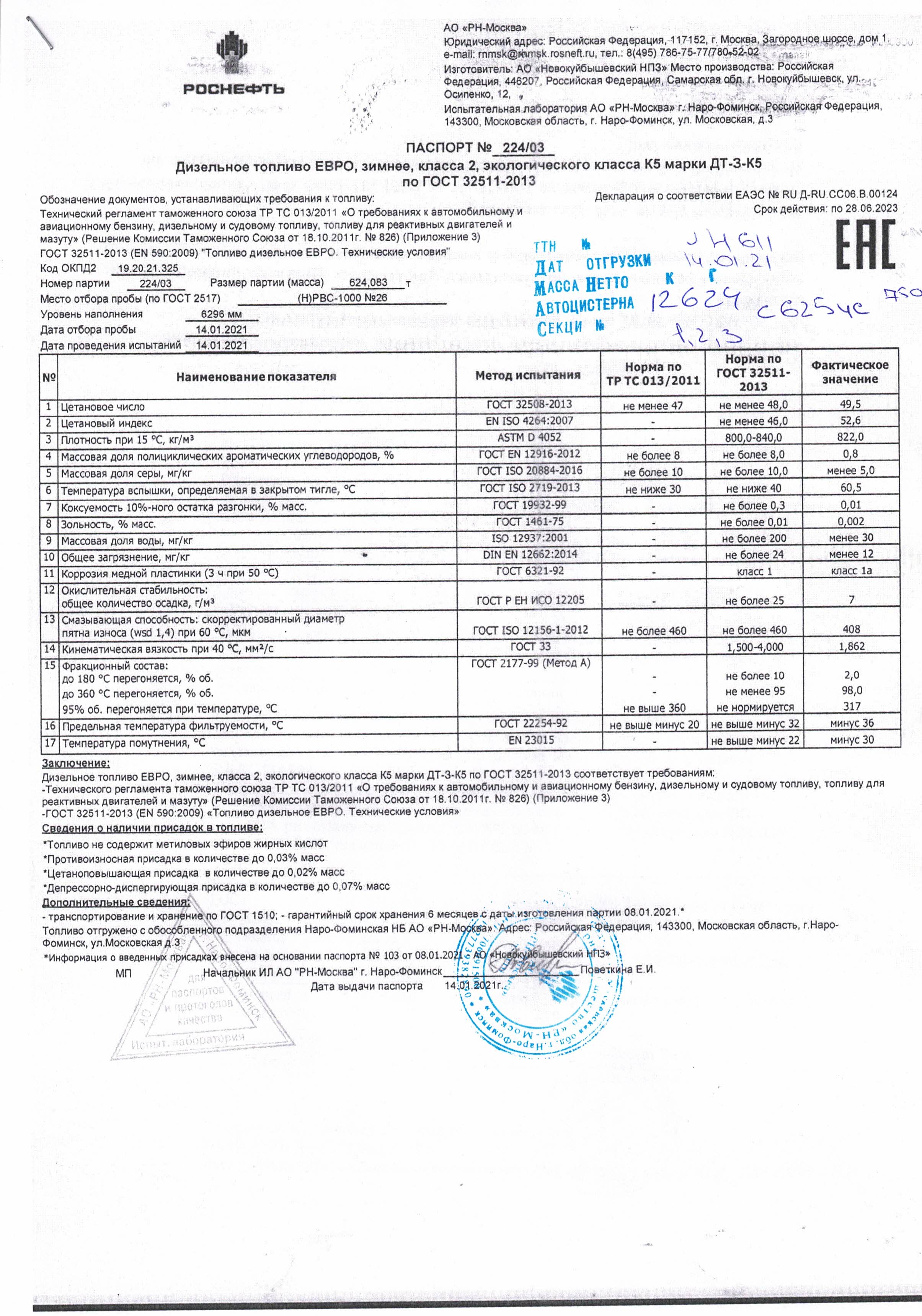 Зимнее дизельное топливо класс 2 ДТ-З-К5 «Роснефть» по минимальной цене — у проверенного поставщика